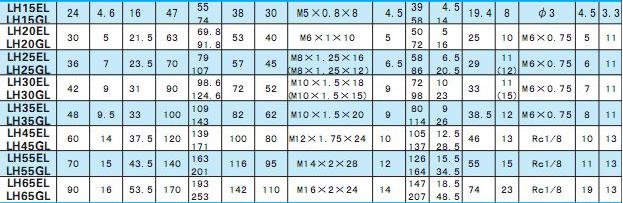 LH15EL、LH15GL、LH20EL、LH20GL、LH25EL、LH25GL、LH30EL、LH30GL、LH35EL、LH35GL、LH45EL、LH45GL、LH55EL、LH55GL、LH65EL、LH65GL、LH85GL