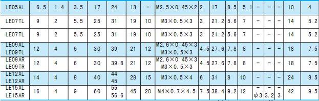 LE05CL、LE07SL、LE09CL、LE09SL、LE12CL、LE15CL